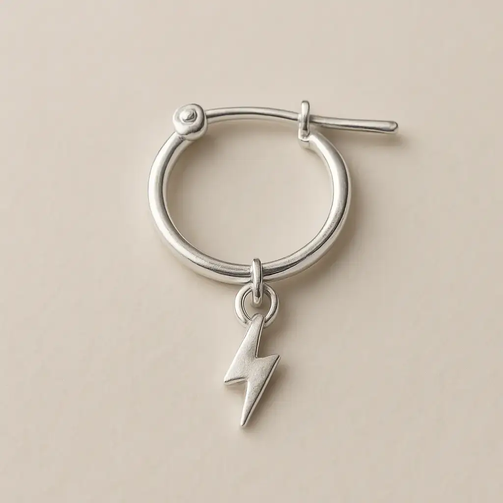 Adicione um toque de energia e modernidade ao seu visual com a Argolinha Raio da Lola Pratas. Perfeita para quem busca um acessório discreto, mas cheio de personalidade, esta argolinha apresenta um charmoso pingente em formato de raio. Confeccionada em prata de alta qualidade, é leve e confortável para uso diário, ideal para o primeiro ou segundo furo. Uma peça versátil que combina com diversos estilos, do casual ao mais ousado, e que certamente fará você brilhar.